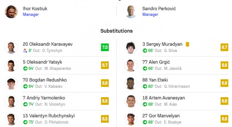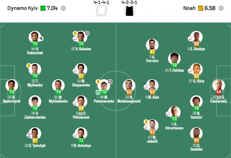 Голи за столичний клуб забили Владислав Кабаєв і Матвій Пономаренко. Найкращим гравцем у складі «біло-синіх» за версією Sofascore став саме дебютант першої команди Динамо Пономаренко, який отримав оцінку 7,5.
