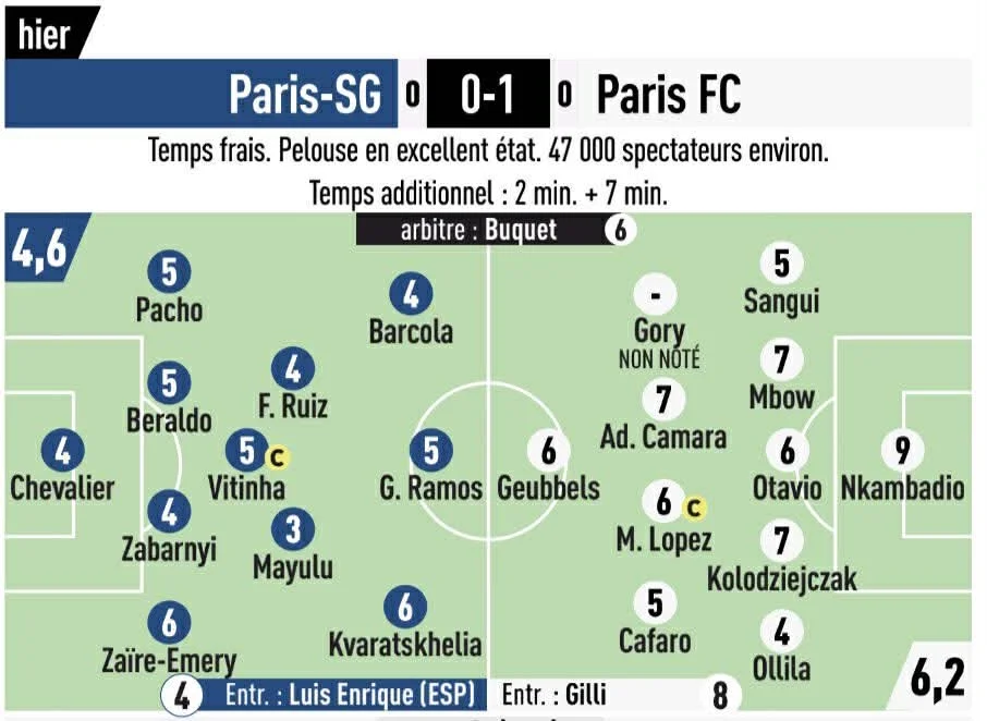 L'Equipe опублікував розгромні оцінки підопічних Луїса Енріке за матч. Дісталося не лише українцю, а й майже усім зіркам ПСЖ. Забарний отримав 4 за свій виступ – це на рівні Люки Шевальє, Фабіана Руїса та Бредлі Барколя. Нижчий рейтинг лише у Сенні Меюлю – 3. Найкращим гравцем матчу став воротар Парижа Нкамбадіо (9).