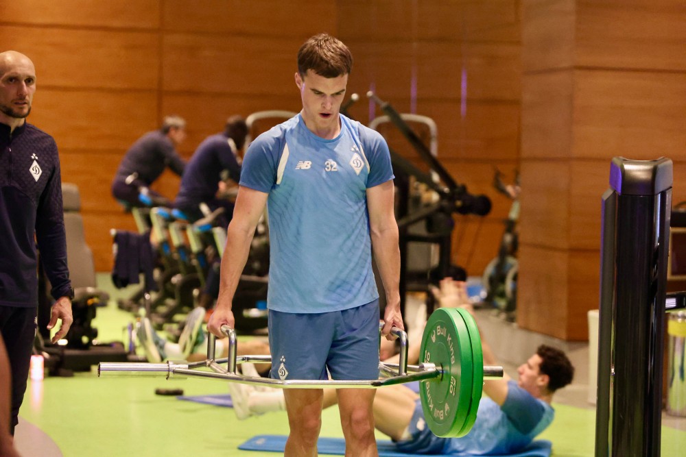 А вечірнє тренування цього дня відбулося у тренажерному залі готелю. Після розминки гравці приступили до виконання вправ на різних тренажерах та з різним знаряддям, розділившись на маленькі групи. Поки одна група виконувала вправи зі штангою, інша – з еспандерами, ще одна виконувала присідання з вагою – і так далі по колу.