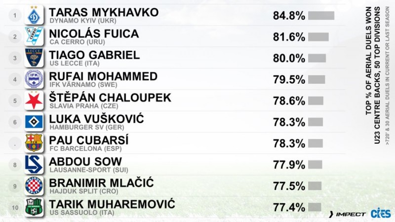 Топ-10 найкращих захисників світу за відсотком виграних дуелей в повітрі