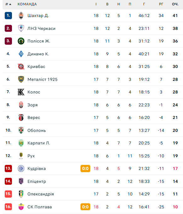 Динамо боротьба за золото поки не світить, але прогрес є. Розгром Епіцентра став для киян четвертою перемогою поспіль і дозволив закріпитися на четвертій сходинці. Металіст 1925 здолав Олександрію, однак Кривбас обіграв Зорю та повернув собі п'яту позицію. Наразі криворіжці лише на 2 бали відстають від Динамо.