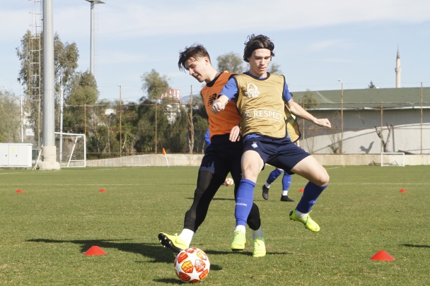 На перший тренувальний день Ігор Костюк призначив два повноцінних заняття. Найважливішим поєдинком лютого для «біло-синіх» є зустріч з «Ювентусом» в Юнацькій лізі УЄФА вже 20 лютого, тому, відразу після легкої пробіжки і розминки, пішла активна робота з м'ячами, моделювання і пресинг.