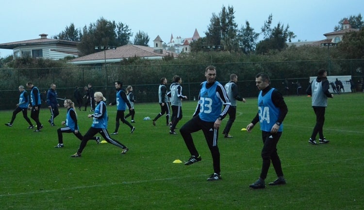 Тренувальний збір українських рефері в Белеку наближається до екватору, тому за насиченістю зараз найбільш спекотна пора. Хоча зранку погода на узбережжі зіпсувалася, пішов рясний дощ, це не завадило конструктивній роботі. Уранці під керівництвом інструкторів арбітри займалися на полі, відпрацьовуючи швидкість, координацію та рухливість. Ця інтенсивна робота тривала годину.