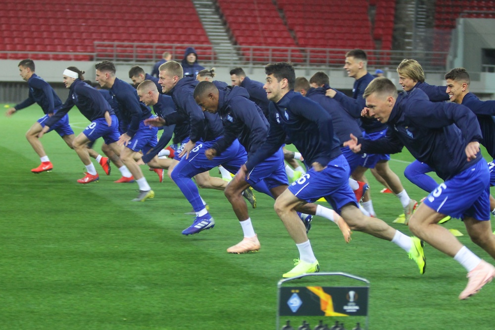 Шлях команди від готелю Marriott до стадіону зайняв не більше 15 хвилин. Спершу головний тренер “біло-синіх” Олександр Хацкевич та віце-капітан команди Віктор Циганков відповіли на запитання журналістів на передматчевій прес-конференції, після чого динамівці провели тренування на полі, перші 15 хвилин якого були відкритими для представників ЗМІ.