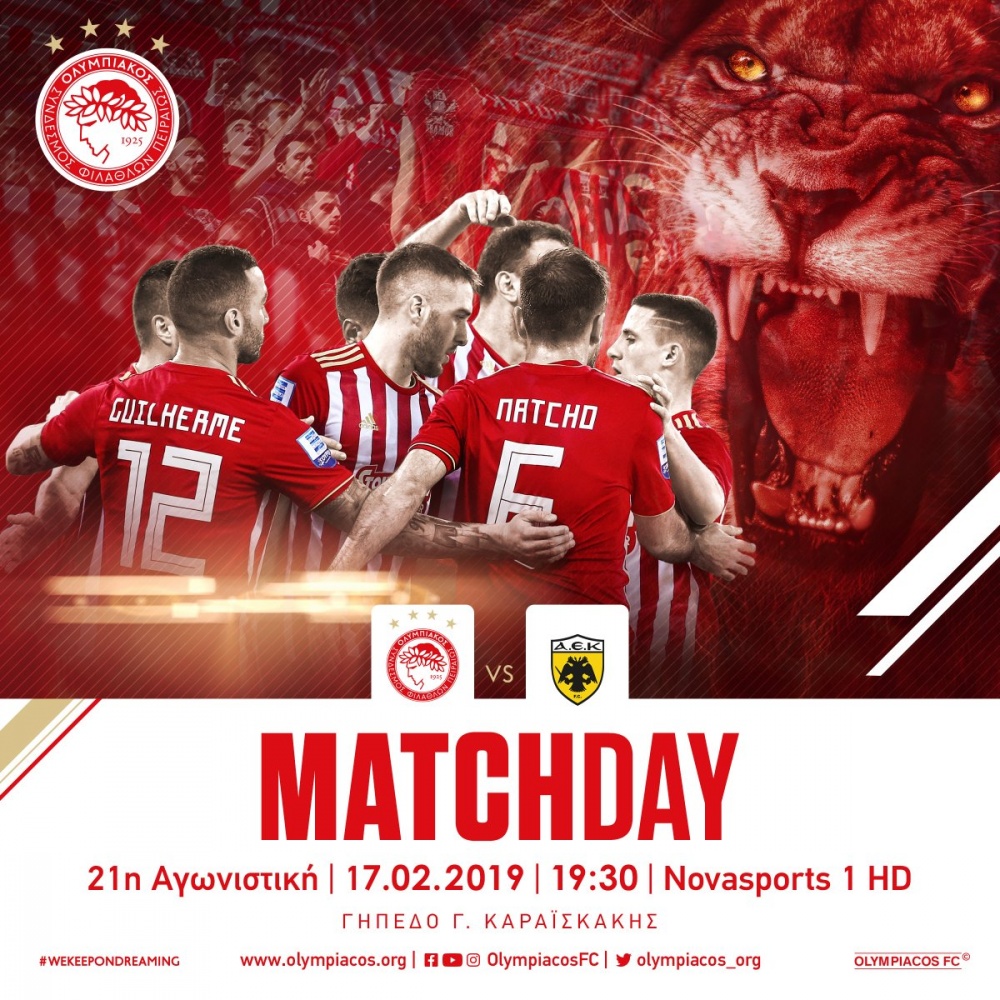 Пропустивши швидкий гол вже на третій хвилині (відзначився Понсе) домашнього матчу із АЕКом, «Олімпіакос» зумів відігратися лише в другому таймі. Рахунок на 50-ій хвилині зрівняв Камара. На цьому господарі не зупинилися і Фортуніс на 72-ій хвилині вивів «Оліміпакос» вперед - 2:1. Далі на 83-ій хвилині єгипетський форвард «Олі» Хассан закріпив перевагу 3:1, а на 87-ій хвилині Фортуніс зробив дубль, довівши рахунок до розгромного 4:1.