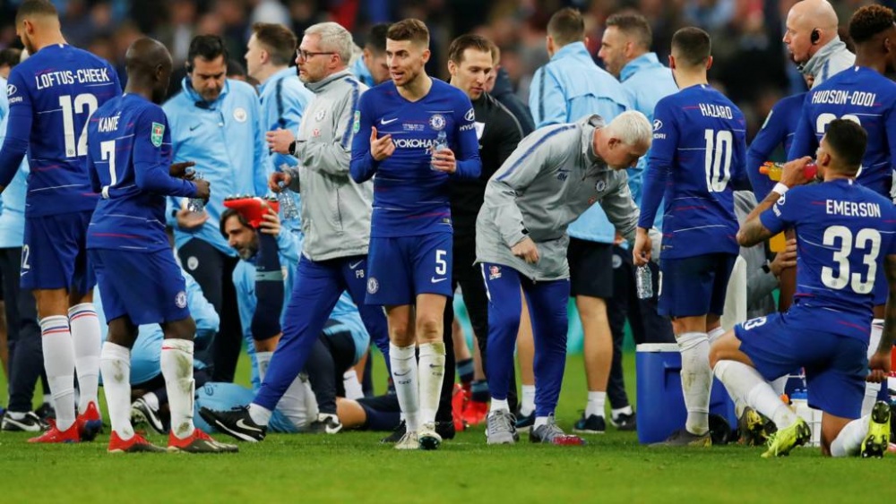»Челсі»: Кепа – Аспілікуета, Давід Луїс, Рюдігер, Емерсон – Жоржінью, Канте, Барклі – Педро, Вілліан, Азар