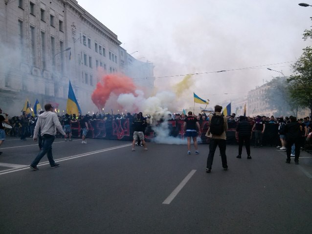Хода стартувала під гімн України і барабанний бій. Ультрас скандували «Слава Україні! Героям Слава!», «Україна понад усе!». Учасники ходи активно використовували фаєри і петарди.