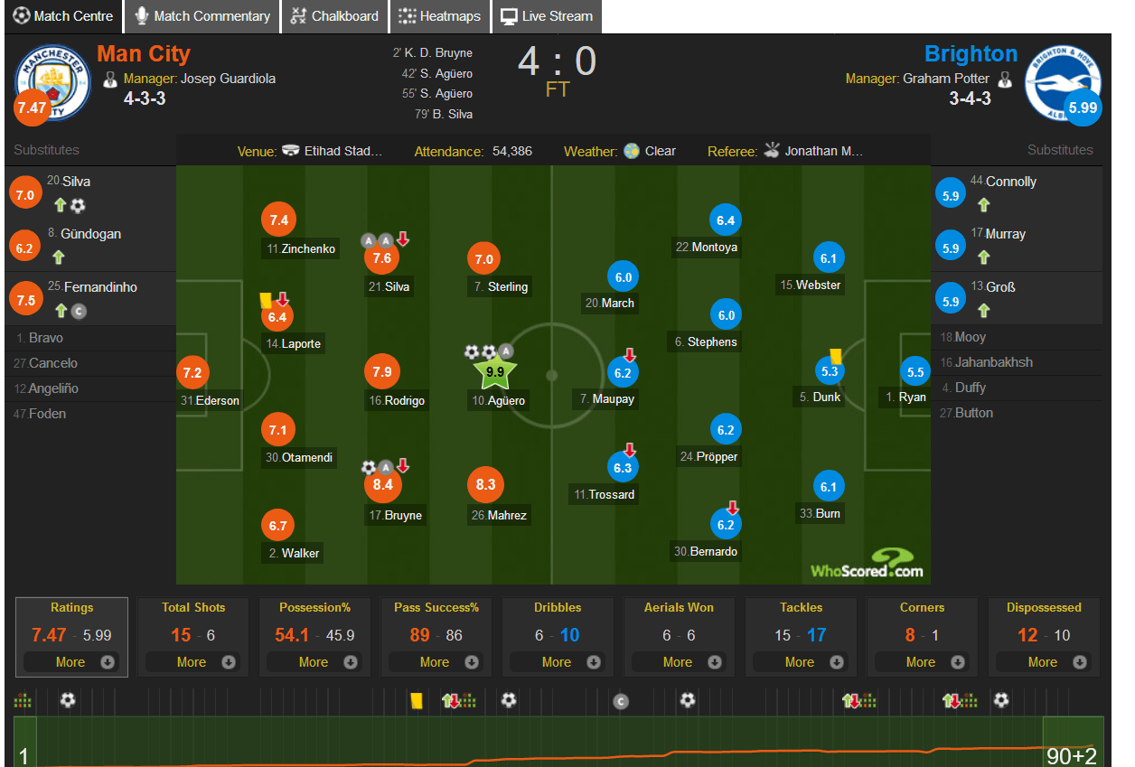 Нагадаємо, що Зінченко вийшов у стартовому складі «Манчестер Сіті» і взяв участь у двох гольових атаках своєї команди, віддав 75 передач, 66 з яких були точними (88%), 88 разів торкнувся м'яча, один раз неточно пробив по воротах, здійснив два відбори м'яча, одне перехоплення і два виноси.