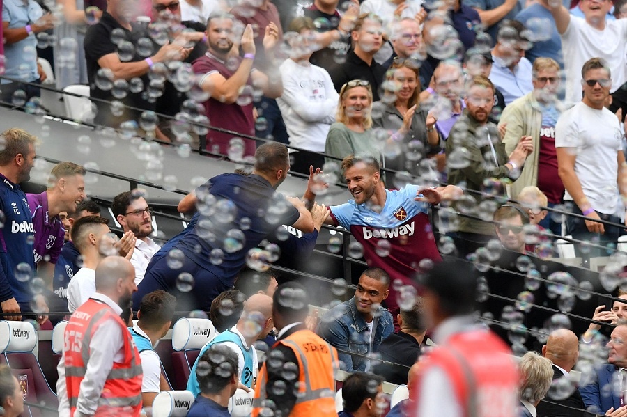 Ярмоленко отпраздновал гол вместе с сотрудниками медицинского штаба «Вест Хэма», которые помогали Андрею восстанавливаться после тяжелой травмы ахиллового сухожилия, полученной еще в октябре минувшего года.