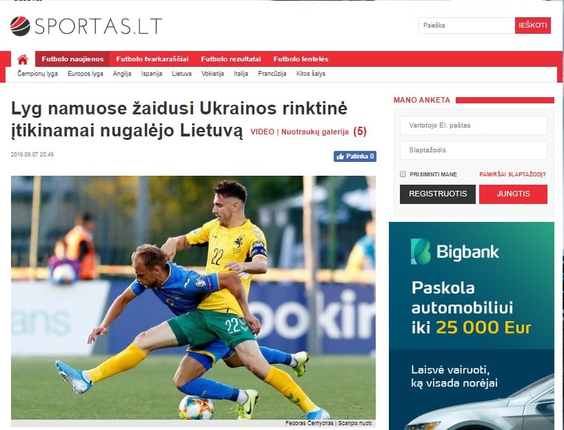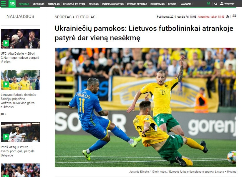 «Тысячи украинских болельщиков приветствовали победу своих любимцев над сборной Литвы. Наша команда неплохо начала матч, но, к сожалению, первая же атака гостей закончилась голом. Второй же мяч Марлоса и вовсе сбил литовцев с катушек. Дальше исход поединка не вызывал сомнений», — пишет литовский ресурс.