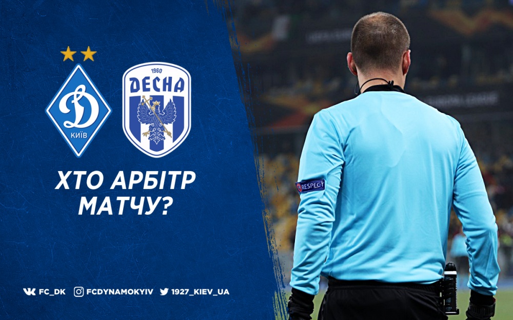 На поєдинку між «Динамо» та «Десною» працюватиме суддівська бригада на чолі з 28-річним Віктором Копієвським із Кропивницького. У нинішньому сезоні працював уже на двох матчах УПЛ, в яких показав по сім попереджень та призначив по одному пенальті. Був серед них і поєдинок за участю «Динамо» – у 1-му турі «біло-сині» обіграли на виїзді львівські «Карпати» (2:0).