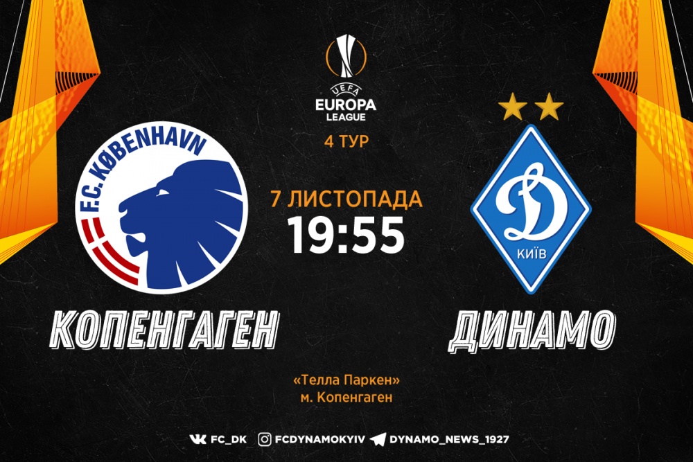 Матч «Копенгаген» – «Динамо» розпочнеться о 19:55, в Копенгагені на стадіоні «Паркен». Пряма трансляція гри відбудеться на телеканалі «Футбол 1».