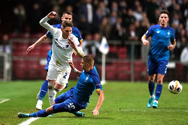 В цілому, план на гру провалився. В першому таймі динамівці більшою мірою діяли через фланги. Подачі та простріли, традиційно, не несли загрози для воріт суперника. Перспетивно, але не більше, виглядали зміщення флангових півзахисників в середину. Гравці Копенгагена оборонялися простим низьким блоком.