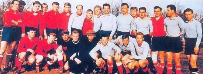 Сборная СССР перед стартовым матчем ЧМ-1962. Третий слева в верхнем ряду – киевлянин Виктор Каневский