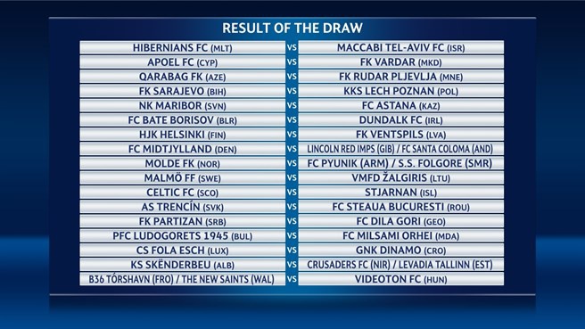Упомянутые команды стартуют со второго отборочного раунда, а до них за дело возьмутся чемпионы Армении и Эстонии. В первом круге квалификации таллинская «Левадия» сразится с «Крузейдерс» из Северной Ирландии, а ереванский «Пюник» - с «Фольгоре» из Сан-Марино.