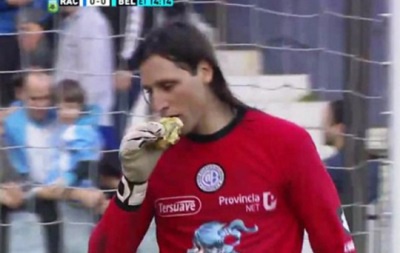 В один момент на воротаря з трибун полетів чізбургер. Але Хуан не розгубився, підняв його, зробив вигляд, що скуштував на смак та подякував вболівальників за безкоштовну їжу.