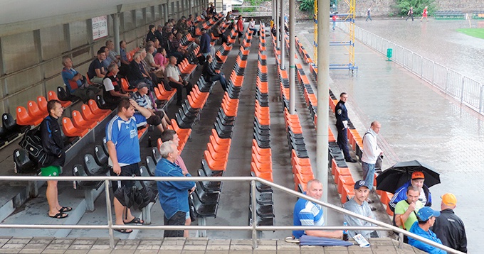 Відрадно, що дощ не злякав справжніх вболівальників комсомольського клубу. Присутні на трибуні близько сотні фанатів отримають невелику компенсацію за відданість. Керівництво «Гірника-Спорт» прийняло рішення кожному з тих, хто прийшов на матч під зливою, вручити перепустку на майбутній матч проти київського «Динамо». Для цього прямо на трибунах переписали прізвище та мобільний телефон кожного.