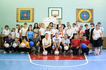 У другий день осені до них приїхали почесні гості з «Динамо»: футболіст Сергій Мякушко, тренери Юрій Дмитрулін і Віталій Косовський. А також представник дистрибуції каналів Discovery, зокрема, Eurosport Оксана Ферчук і представник київського українського товариства сліпих (УТОС) Тетяна Драчевська. Вони вручили дітям, що погано бачать, спеціальні м'ячі - вісім для футболу і два для гандболу. У них усередині знаходяться спеціальні дзвіночки, які шумлять при русі м'яча, завдяки їм діти можуть краще з ними поводитися. Подібні м'ячі вже вручали дітям у Львові, Мукачеві та Слов'янську.
