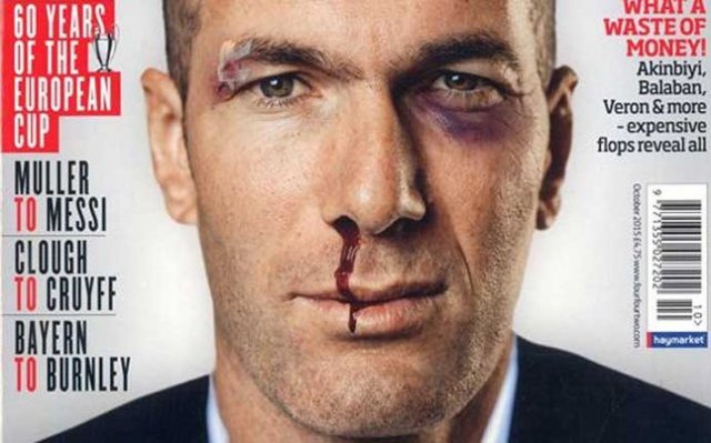 «Історія про важку битву Зідана за право стати Пепом Гвардіолою мадридського «Реала», - ця фраза супроводжує криваву світлину Зідана.