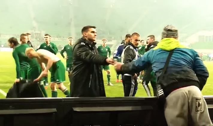 Після гри вболівальники змусили футболістів «Шльонська» зняти футболки, щоб не ганьбити кольори та герб клубу. Гравці покірно виконали ультиматум фанів.