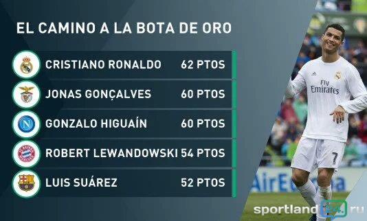 1. Кріштіану Роналду («Реал») 31x2 = 62 очка