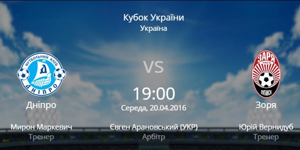Кубок України. 1/2 фіналу. Перший матч. «Дніпро» - «Зоря» 1:0