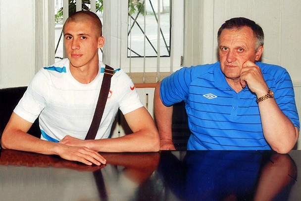 - Євген у нас займався з 8 до 16 років у команді «Спартак» Мелітополь. Він абсолютно не виділявся серед однолітків, а рости швидко почав з 15-16 років. Та й взагалі особливих передумов того, що він досягне рівня одного з найкращих захисників Європи, не було. Хіба що висока швидкість і особлива манера бігу - широкий пластичний крок. Крім цього ще і характер! Євген ніколи не любив програвати, навіть на тренуваннях і двосторонці завжди намагався перемогти.