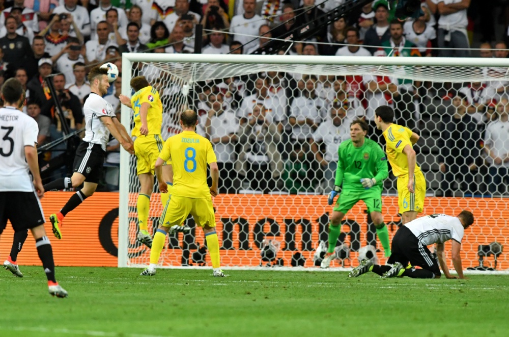 При передачі німці почали вриватися до карного майданчика, а наші футболісти опинилися у ролі наздоганяючих. В такій ситуації команда Йоахіма Льова отримала перевагу. В результаті, на кожній з ключових точок у німців був гравець, готовий пробивати. На ближній стійці — вільний Боатенг, у центрі — Мустафі, який, власне, і забив гол, на дальній стійці — Хедіра.