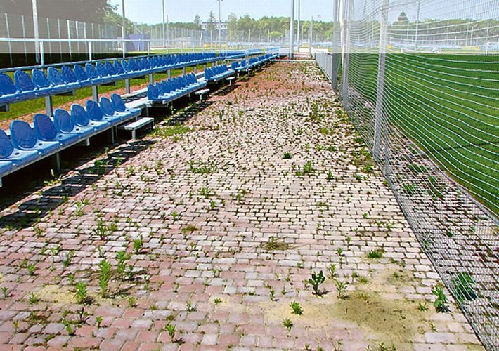 Зате на пострижених газонах футбольних полів працювала поливальна система, але райдужну картину зіпсували дрібні квіточки і справжнісінькі гриби, розсипані по полотну.