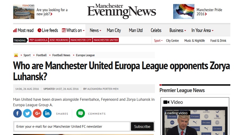 І тільки після цього журналісти Manchester Evening News зривають покрови: ««Зоря» родом з Луганська, але в цьому місті «Юнайтед» не зіграють. Через війну на сході України «Зоря» з 2014 року проводить домашні матчі в Запоріжжі. А «Юнайтед» зустрінеться з «Зорею» в Одесі, на заході (так у тексті – В. С.) країни. У двох попередніх сезонах «Зоря» брала участь у плей-офф кваліфікації ЛЄ, але тільки зараз, зайнявши четверте місце в чемпіонаті, зуміла потрапити в груповий раунд. Однак ще в сезоні 1973/74 клуб брав участь у Кубку чемпіонів як представник СРСР. Нинішній наставник «Зорі» Юрій Вернидуб грав і тренував виключно в Україні».