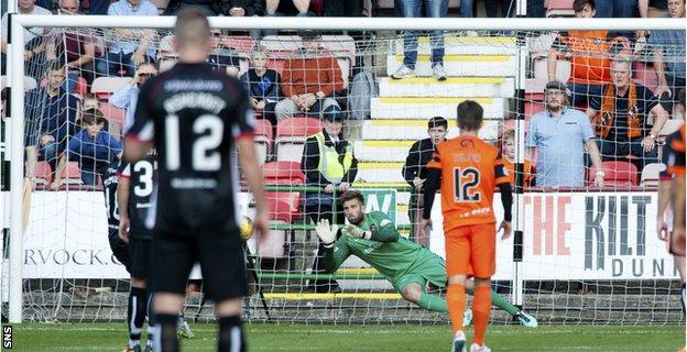 Протягом 23 хвилин Камерон Белл парирував три пенальті від різних гравців «Данфермлайна» - на 9-й, 28-й і 32-й хвилинах.
