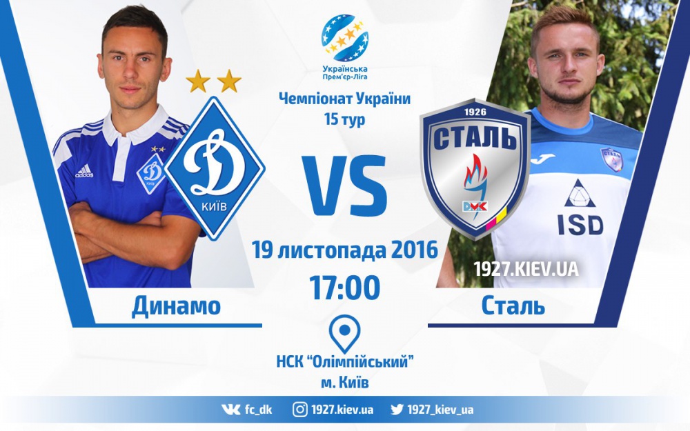 Нагадаємо, що матч «Динамо» - «Сталь» відбудеться 19 листопада на НСК «Олімпійський». Початок - о 17:00.