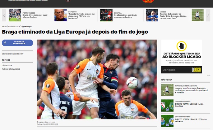 Не скупився на слова журналіст видання O Jogo. «Брага» поступається «Шахтареві» 2:4» – сухий заголовок ознаменував досить детальний звіт про матч. »Брага» програла в себе вдома «Шахтареві» в шостому турі групового етапу Ліги Європи, пропустивши від суперника чотири м’ячі. Але з турніру команда Пезейру була усунена голом Каліфи Кулібалі в поєдинку «Коньяспор» – «Гент».