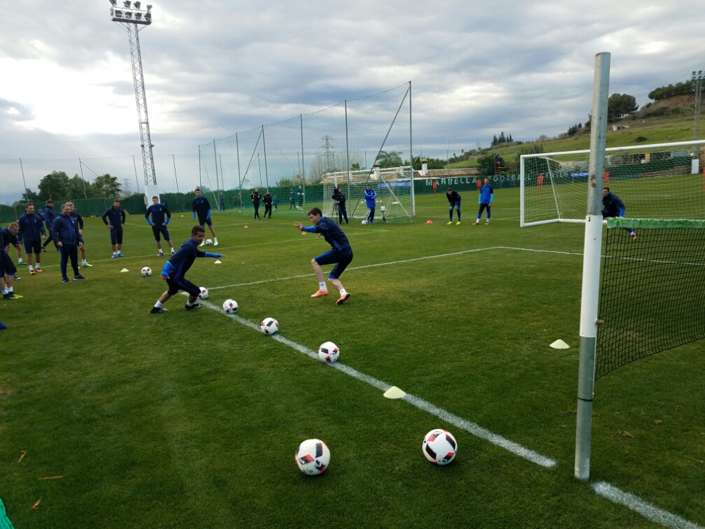 Коли команда прибула до футбольного центру на ранкове заняття, на полях, де кожного дня займаються динамівці, вже були розставлені фішки та тренувальні стійки для різноманітних вправ.