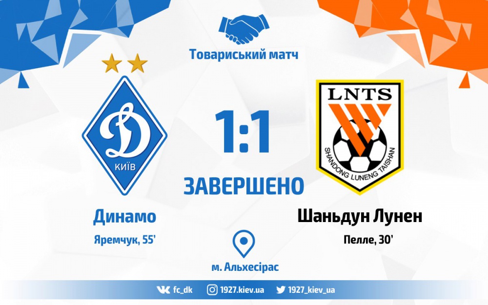 До завершення поєдинку оновлений склад київського «Динамо» притиснув суперника до воріт, але китайці організовано відіграли в обороні і матч завершився за рахунку 1:1.