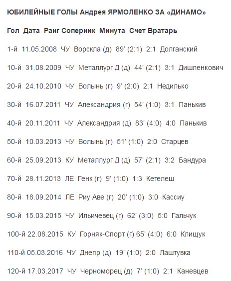 Причому від Андрія Шевченка його відділяє тепер всього 4 м'ячі. 86 раз Ярмоленко вражав ворота суперників у чемпіонатах України, 16 - в Кубку України і 18 - в єврокубках.