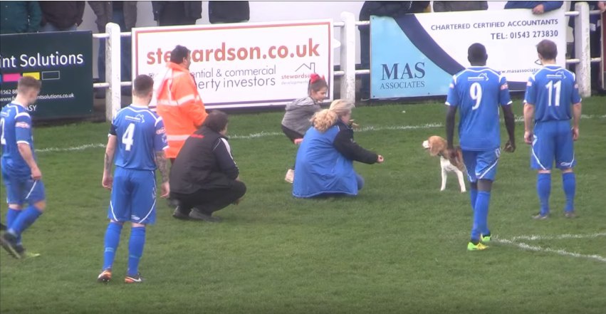 Під час матчу «Скелмерсдейл» — «Хейлсоуен» на поле вибіг песик. Стюардам не вдалося самостійно піймати непроханого гостя і до них приєдналися футболісти і навіть діти.