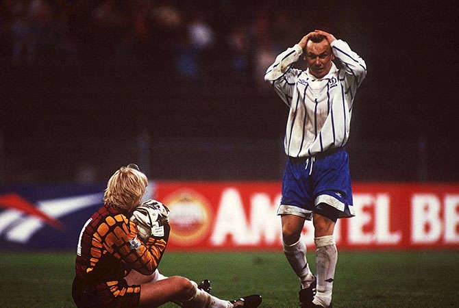 По большому счету игра в сборной у Леоненко откровенно не шла. Да, его боготворили болельщики киевского «Динамо», и готовы были своего «Леона» круглосуточно носить на руках, передавая такой драгоценный «груз» друг другу без спуска на грешную матушку землю. Виктор три года подряд, в сезонах 1992 – 1994, беззаговорочно признавался лучшим футболистом Украины, клепая голы, как на конвейере, как в чемпионате страны, так и на международной арене. Вспомнить, хотя бы, его незабываемые «дубли» в ворота венского «Рапида» (Кубок УЕФА 1992/1993, когда после домашних 0:1 киевляне горели в Австрии 0:3, но в итоге 2:3, что вывело их в следующий круг турнира), грозной «Барселоны» (Кубок чемпионов 1993/1994, когда обыграли каталонцев в меньшинстве – 3:1, сотворив мировую сенсацию, правда, потом уступили 1:4), и в незабываемой зарубе с московским «Спартаком» (Лига чемпионов 1994/1995 – когда горели после первого тайма 0:2, но в итоге вырвали победу 3:2).