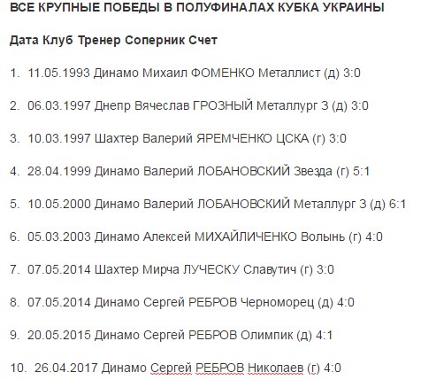 А Сергій Ребров і зовсім вийшов в рекордсмени, ставши першим тренером, який відсвяткував три великі перемоги в півфіналах.