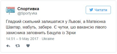 «Гладкий схильний залишатися у Львові, а Матвієнка «Шахтар», мабуть, забере. Є чутки, шо вакансію лівого захисника заповнить Бацула із «Зірки»», - інформує видання.