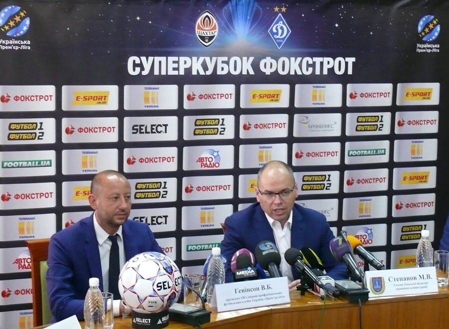 Наостанок додамо, що представники Дирекції УПЛ привезли в Одесу сам приз – Суперкубок України. А Володимир Генінсон передав Максиму Степанову футбольний м’яч, ідентичний тому, яким у суботу зіграють «Шахтар» і «Динамо».