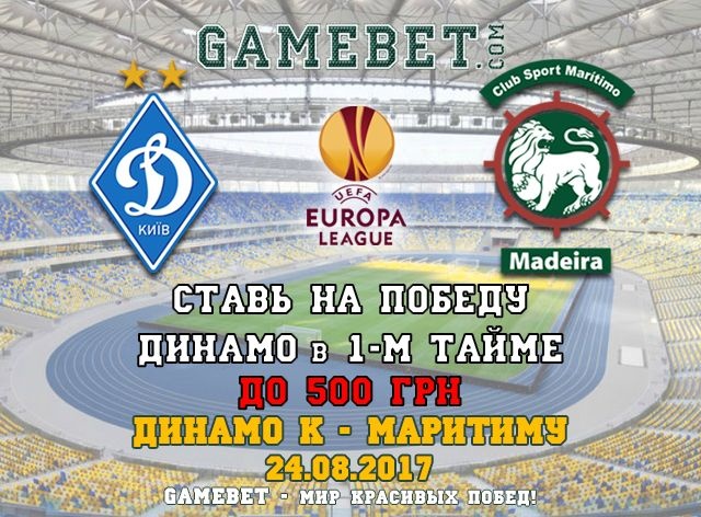 3. Зробити ставку на перемогу «Динамо» Київ в 1-му таймі, коєффіціент на цю подію складає 1.70! Сума ставки не має перевищувати 500 грн.