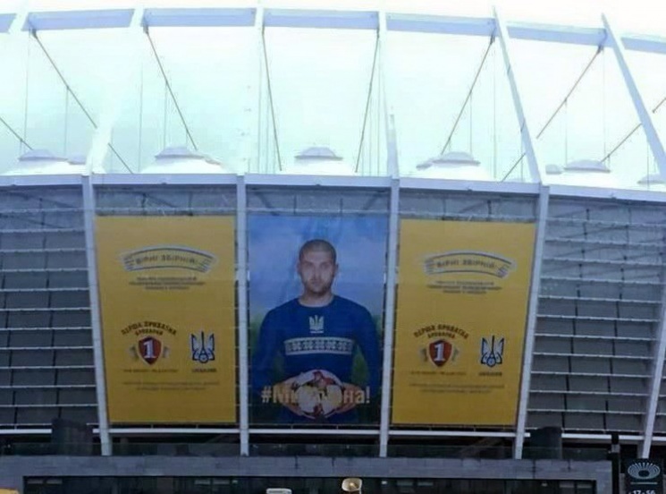 Але чи має відношення «Шахтар» до появи Ракицького і Коваленка (пізніше виявилося, що і його фото красується на стадіоні) на фасаді НСК? Теоретично може мати, якщо придумувати, що він міг домовитися зі спонсором національної збірної. Цього ми не дізнаємось офіційно. Як не дізнаємося і того, яку ідею закладали люди, що створили та розмістили ці постери на головній арені країни. Можливо, причина банальніша за всі здогадки і фотографія Ракицького просто вийшла краща за інших по якості, аби збільшити її до потрібних розмірів.