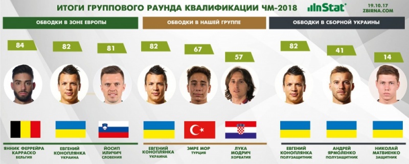 Реалізація індивідуальних якостей - важливий елемент у футболі. Але зловживати ним теж не варто. Потрібен баланс, у якому колективні дії все одно виходять на перший план. Складно сказати, наскільки додав в командній грі півзахисник збірної України Євген Коноплянка, але за підсумками групового турніру ЧС-2018 він зайняв друге місце за кількістю вдалих обведень серед всіх учасників європейської кваліфікації.