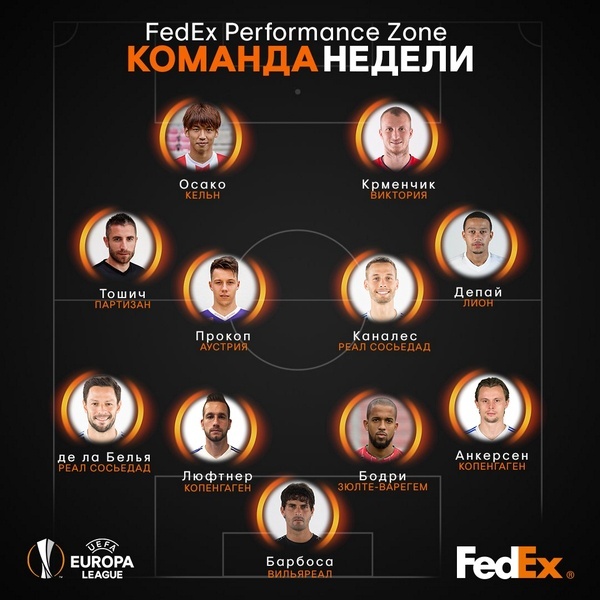 UEFA.com склав на підставі статистики FedEx Performance Zone збірну четвертого туру Ліги Європи. До неї серед інших потрапили Мемфіс Депай і два захисника «Копенгагена».