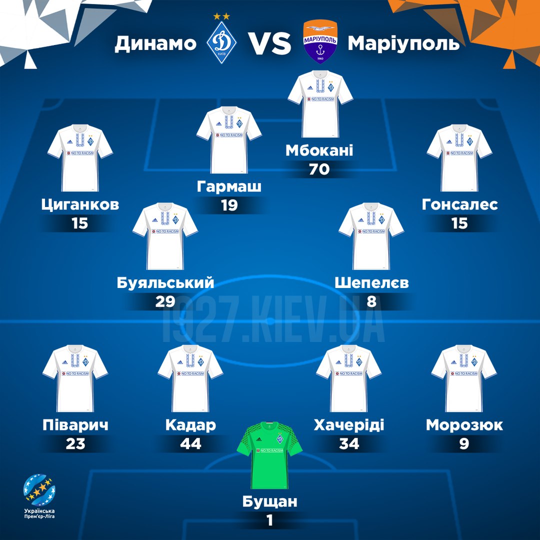 «Динамо»: Бущан - Морозюк, Хачеріді, Кадар, Піварич - Шепелєв, Буяльський - Гонсалес, Гармаш, Циганков - Мбокані.