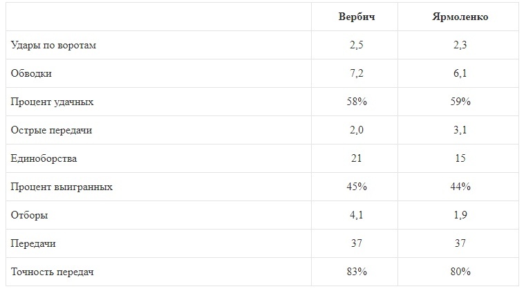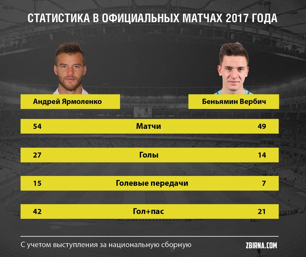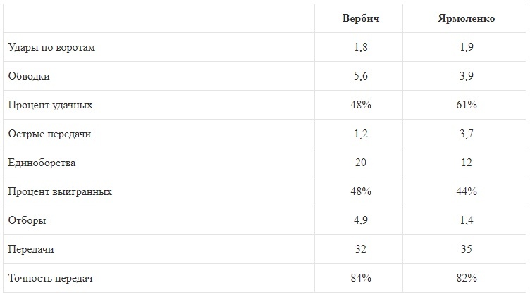 Новачок «Динамо» Бенджамін Вербич набагато активніше працює у відборі, але в результативності суттєво поступається Андрію Ярмоленку.