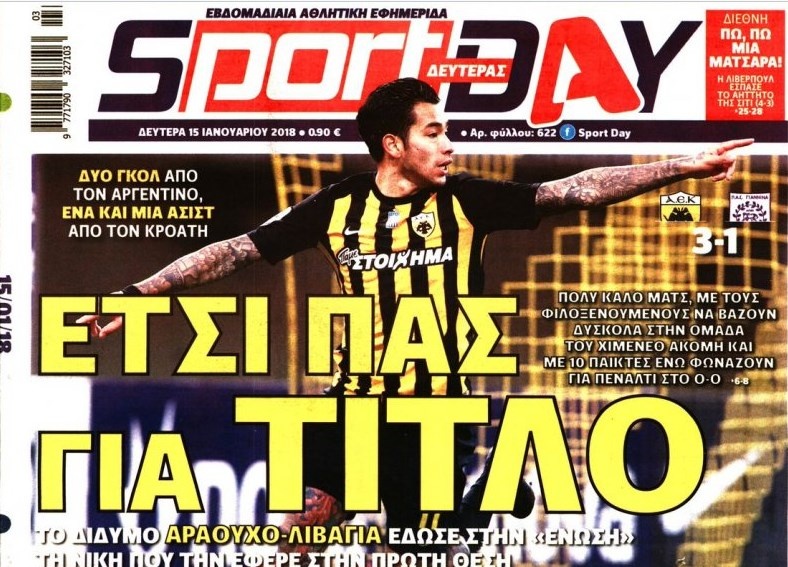 Після недільного поєдинку 17-го туру чемпіонату Греції між афінським АЕКом і «Яніною», в якому жовто-чорні перемогли з рахунком 3:1, грецька спортивна преса вибухнула дифірамбами на адресу атакуючого дуету господарів Марко Лівая - Серхіо Араухо.