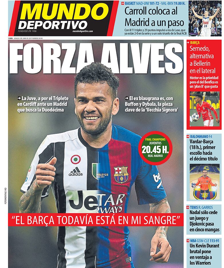 6. Обложка испанской «Mondo Deportivo», предварявшая финал Лиги чемпионов «Реал» — «Ювентус», продемонстрировала, за кого будет болеть эта часть Испании. Наличие в составе «Юве» Дани Алвеса помогло креативно подойти к оформлению.
