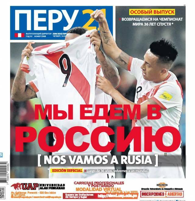 8. Перуанцы так радовались выходу своей сборной на чемпионат мира 2018, что даже выпустили один номер газеты «Peru 21», где обложка была оформлена на русском языке. Их можно понять, ведь 36 лет уже не играли на мундиале.
